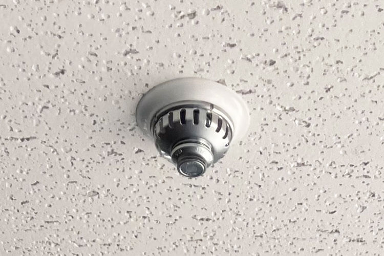 感知器を用いて火災により発生する熱や煙を自動検知し、受信機、音響装置を鳴動させて建物内に報知する事により、避難と初期消火活動を促す設備です。